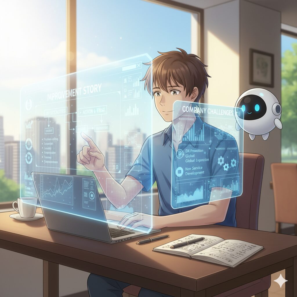 • AIは、自己分析で見つけた「あなたの軸」と、企業研究で見つけた「企業の本質」を客観的に繋ぎ合わせ、最強の「ストーリー」を構築するパートナーになる。