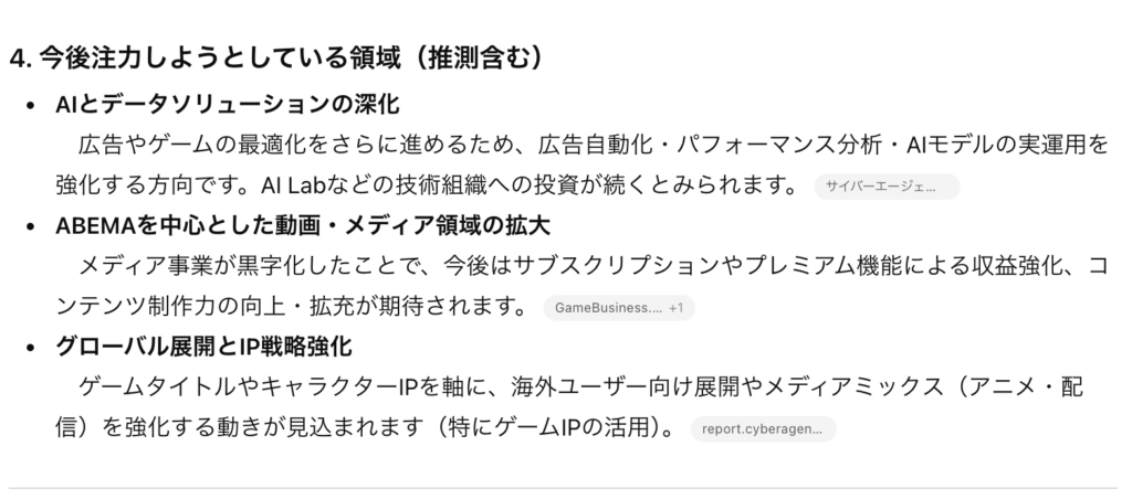 4. 今後注力しようとしている領域(推測含む) 初心者にもわかるように解説してください。