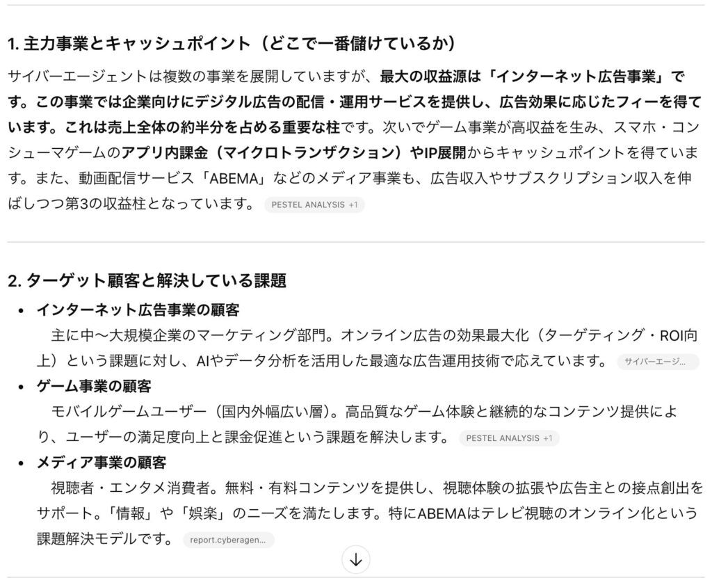 実際の出力例(サイバーエージェントの場合)
