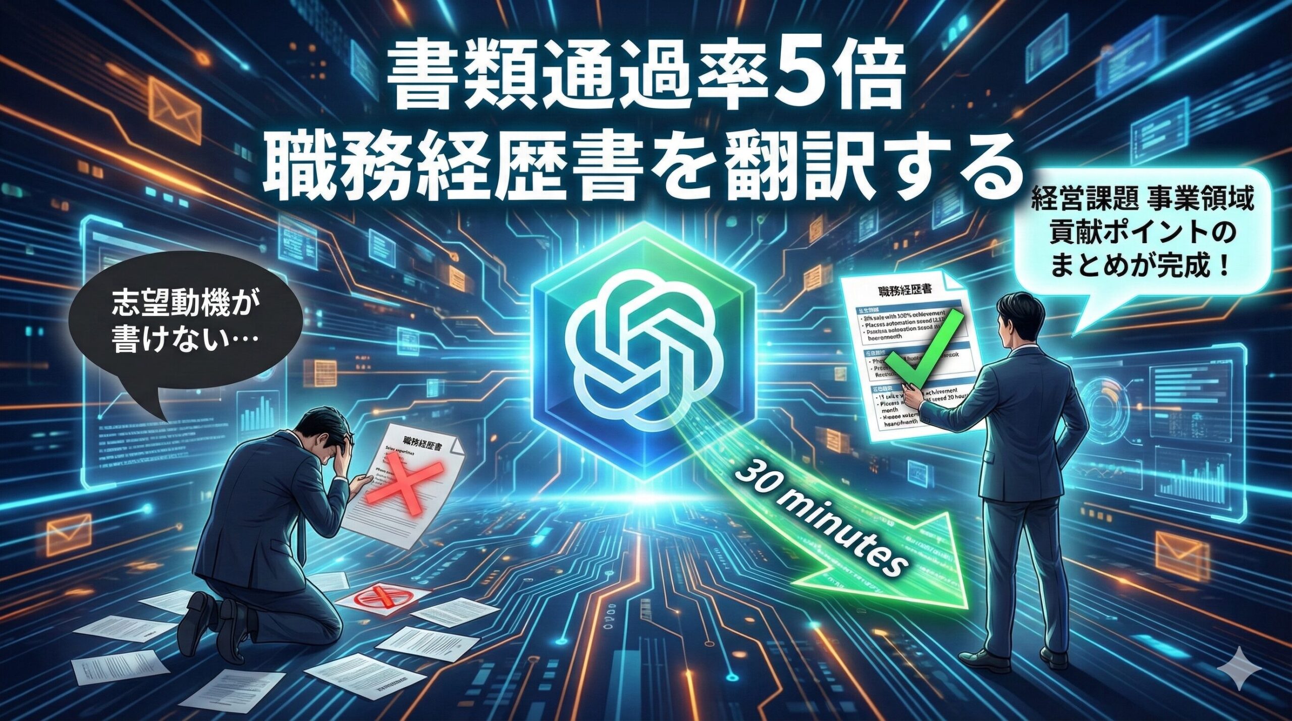 生成系AIを使って、書類通過率が5倍になる職務経歴書を30分で作る方法を公開します。