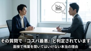 残業を面接で聞くのがNGな理由は「マナー違反」ではない。採用担当が「コスパの悪い人材」と判定するからです。転職支援1,000人の現場で見た、評価を落とさずに条件を確認する正しい順番を解説。